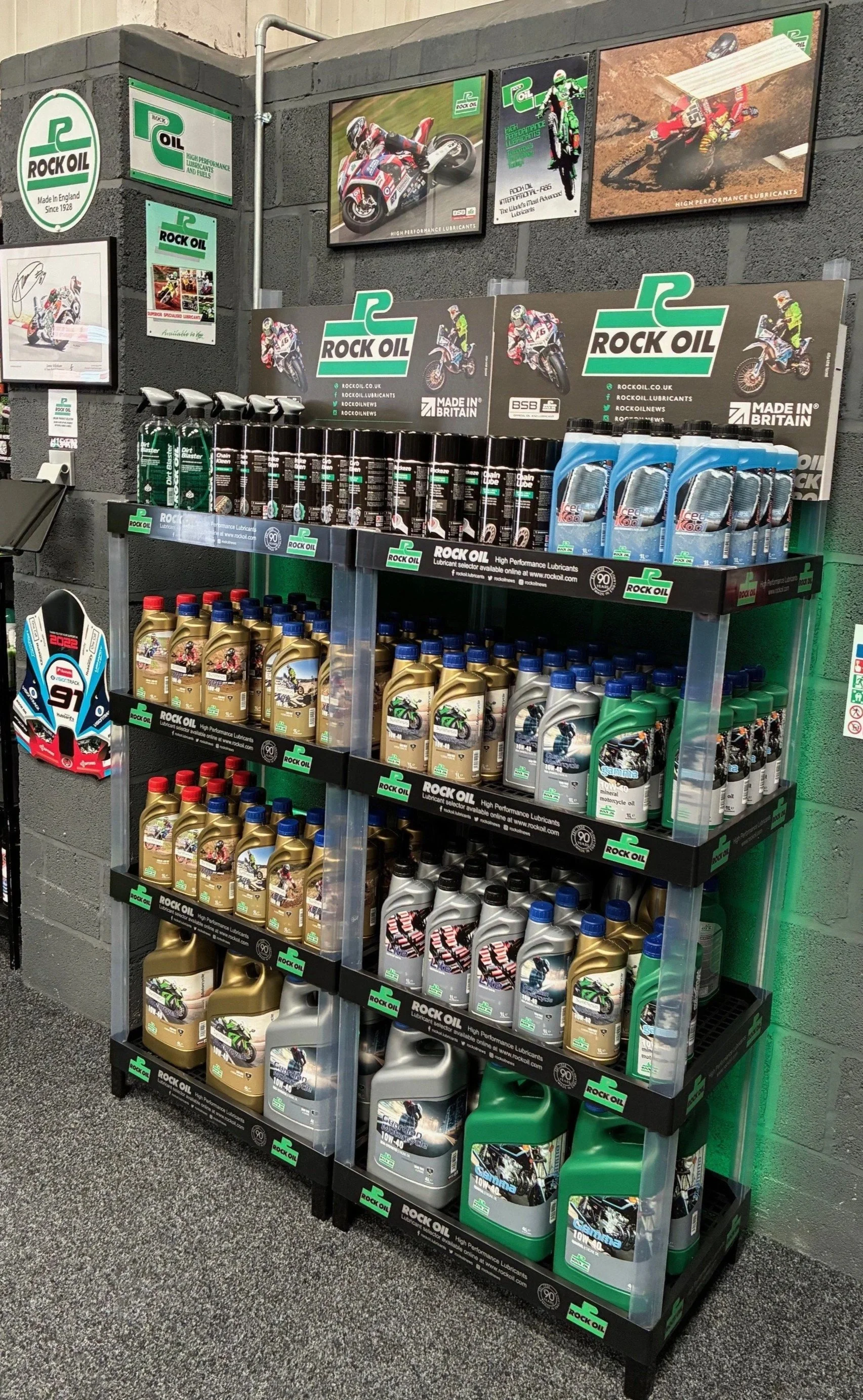 Made in Britain, family-owned through multiple generations & with a wealth of bike racing heritage (including here at Carnaby), Rock Oil is a brand we are very proud to use in our own bikes and to supply to our customers across trade and retail.